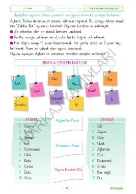 Kartlar sırayla çekilecek ve zıt anlamlısı bir kağıda not edilecek.