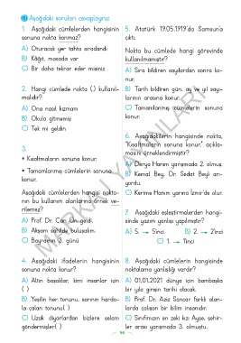 2. Hangi cümlede nokta (.) kullanıl- B) Tarih bildiren gün, ay ve yıl sayı-
