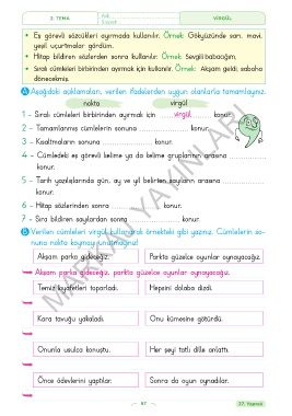 B Verilen cümleleri virgül kullanarak örnekteki gibi yazınız. Cümlelerin so-