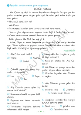 B) Koyunları ona ödünç vermesini 6. Aşağıdaki özelliklerden hangisi