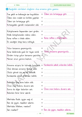 A Aşağıdaki cümleleri olayların oluş sırasına göre yazınız.