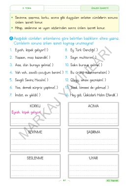 • Sevinme, şaşırma, korku, acıma gibi duyguları anlatan cümlelerin sonuna
