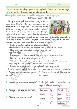 2. Hoca’nın yolunu nerede kesmişler? 6. Aşağıda verilen özelliklerden Ho-