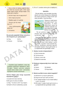 Page 32 - 3. SINIF PARAGRAF VE MANTIK MUHAKEME SORU BANKASI - DATA YAYINLARI