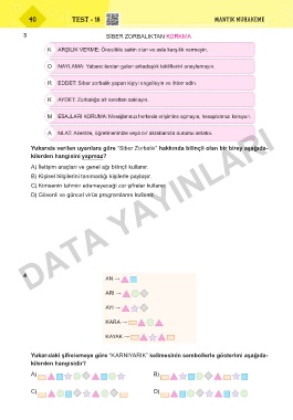 Page 40 - 3. SINIF PARAGRAF VE MANTIK MUHAKEME SORU BANKASI - DATA YAYINLARI
