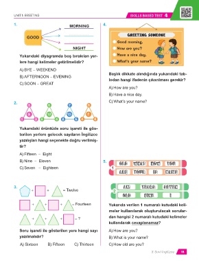 Soru işareti ile gösterilen yere hangi sayı A) How are you?