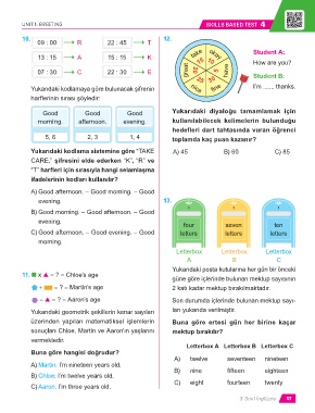Yukarıdaki kodlama sistemine göre “TAKE A) 45 B) 60 C) 85