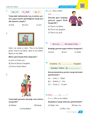 UNIT 2: MY FAMILY ACHIEVEMENT TEST 1