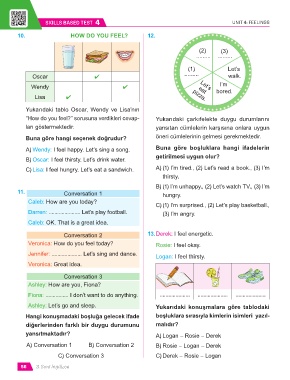 A) Wendy: I feel happy. Let’s sing a song. Buna göre boşluklara hangi ifadelerin