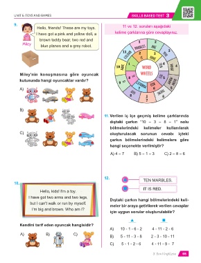 Hello, friends! These are my toys. 11 ve 12. soruları aşağıdaki