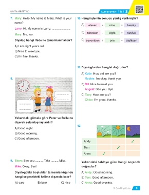 7. Mary: Hello! My name is Mary. What is your 10. Hangi işlemin sonucu yanlış verilmiştir?