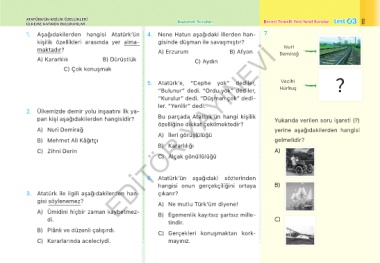 ATATÜRK’ÜN KİŞİLİK ÖZELLİKLERİ - Kazanım Soruları Beceri Temelli Yeni Nesil Sorular test 03