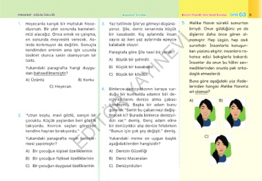 1. Heyecanla karışık bir mutluluk hisse- 3. Yaz tatilinde Şile’ye gitmeyi düşünü- 5. Melike Hanım sürekli somurtan