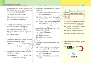 120 DOĞAYI VE ÇEVREYİ KORUYORUM - Kazanım Soruları Beceri Temelli Yeni Nesil Sorular test 05