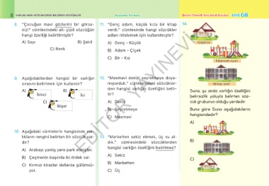 26 VARLIKLARIN NITELIKLERINI BILDIREN SÖZCÜKLER Kazanım Soruları Beceri Temelli Yeni Nesil Sorular test 08
