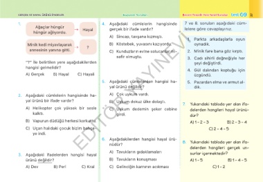 GERÇEK VE HAYAL ÜRÜNÜ IFADELER Kazanım Soruları Beceri Temelli Yeni Nesil Sorular test 09 27