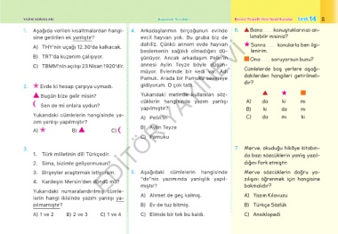 1. Aşağıda verilen kısaltmalardan hangi- 4. Arkadaşlarımın birçoğunun evinde 6. Bana ...... konuştuklarınızı an-