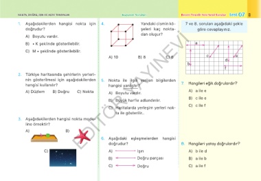 NOKTA, DOĞRU, IŞIN VE AÇIYI TANIYALIM Kazanım Soruları Beceri Temelli Yeni Nesil Sorular test 07 69
