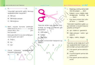 70 NOKTA, DOĞRU, IŞIN VE AÇIYI TANIYALIM Kazanım Soruları Beceri Temelli Yeni Nesil Sorular test 07