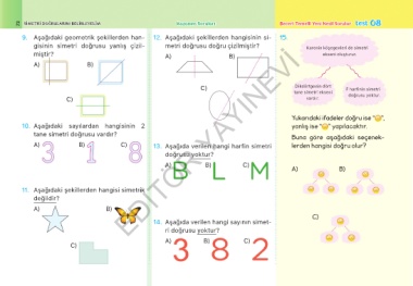 72 SIMETRI DOĞRULARINI BELIRLEYELIM Kazanım Soruları Beceri Temelli Yeni Nesil Sorular test 08