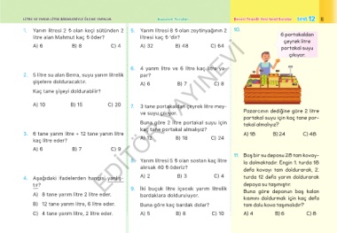 LITRE VE YARIM LITRE BIRIMLERIYLE ÖLÇME YAPALIM Kazanım Soruları Beceri Temelli Yeni Nesil Sorular test 12 81