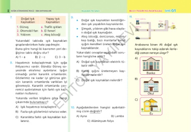 88 IŞIĞIN GÖRMEDEKİ ROLÜ - IŞIK KAYNAKLARI Kazanım Soruları Beceri Temelli Yeni Nesil Sorular test 01