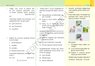 BEN VE ÇEVREM Kazanım Soruları Beceri Temelli Yeni Nesil Sorular test 04 95