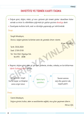tebrik (kutlama) kartı yazarız. YAYINLARI