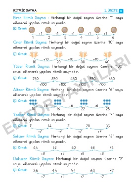 Birer Ritmik Sayma : Herhangi bir doğal sayının üzerine “1” sayısı
