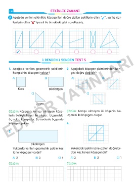A Aşağıda verilen etkinlikte köşegenleri doğru çizilen şekillerin altını “ “, yanlış çizi-