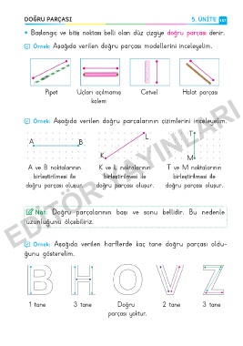 { Not: Doğru parçalarının başı ve sonu bellidir. Bu nedenle