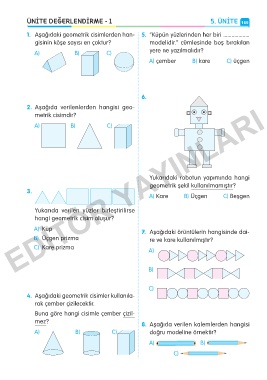 1. Aşağıdaki geometrik cisimlerden han- 5. “Küpün yüzlerinden her biri ...................
