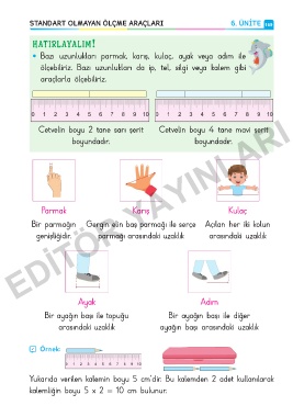 ölçebiliriz. Bazı uzunlukları da ip, tel, silgi veya kalem gibi