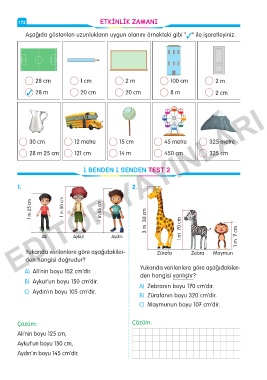 A Aşağıda gösterilen uzunlukların uygun olanını örnekteki gibi “ “ ile işaretleyiniz.