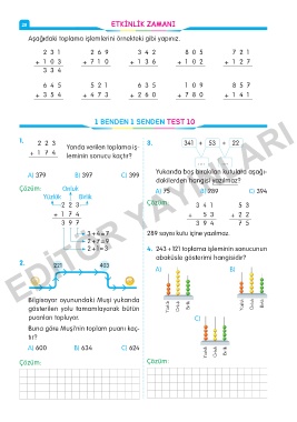 2 + 1 = 3 4. 243 + 121 toplama işleminin sonucunun
