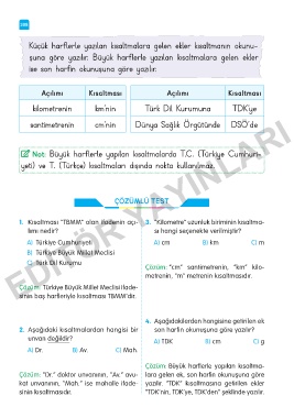 1. Kısaltması “TBMM” olan ifadenin açı- 3. “Kilometre” uzunluk biriminin kısaltma-