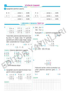 Yukarıdaki çıkarma işlemlerinden yan- A) 101 B) 111 C) 121