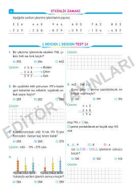 1. Bir çıkarma işleminde eksilen 738, çı- Çözüm: