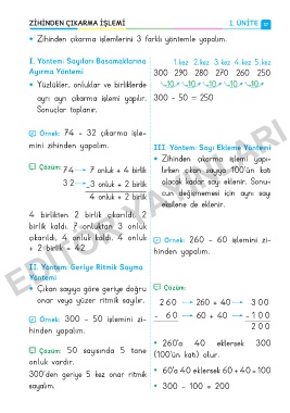 Zihinden çıkarma işlemlerini 3 farklı yöntemle yapalım.