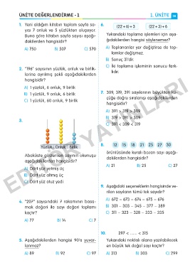 2. “196” sayısının yüzlük, onluk ve birlik- lıdır.