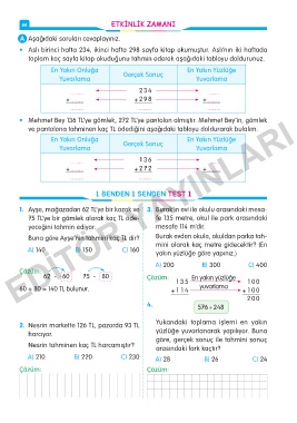 2. Nesrin markette 126 TL, pazarda 93 TL 4. Yukarıdaki toplama işlemi en yakın