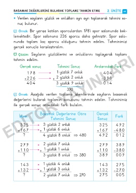 BASAMAK DEĞERLERINI BULARAK TOPLAMI TAHMIN ETME 2. ÜNITE 45