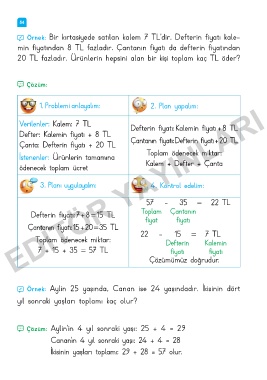 Verilenler: Kalem: 7 TL Defterin fiyatı: Kalemin fiyatı + 8 TL
