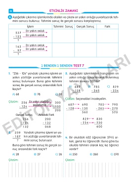 A Aşağıdaki çıkarma işlemlerinde eksilen ve çıkanı en yakın onluğa yuvarlayarak tah-