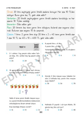 LİTRE PROBLEMLERİ 6. ÜNİTE – 9. TEST