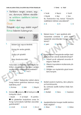 VARLIKLARIN ÖZELLİKLERİNİ BELİRTEN İFADELER 7. TEMA – 6. TEST