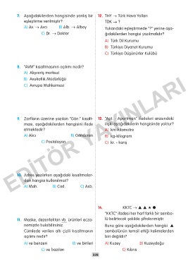 7. Aşağıdakilerden hangisinde yanlış bir 12. THY → Türk Hava Yolları