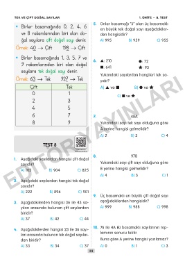 TEK VE ÇİFT DOĞAL SAYILAR 1. ÜNİTE – 8. TEST