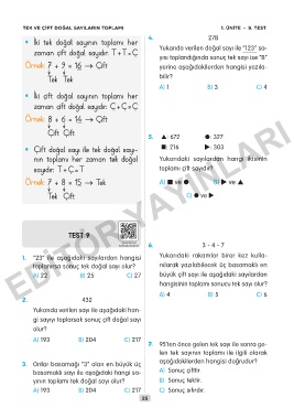yının toplamı tek doğal sayı olur? B) Sonuç tektir.