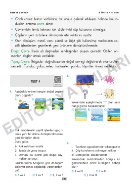 BEN VE ÇEVREM 6. ÜNİTE – 4. TEST